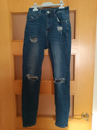 Pantalones vaqueros de corte ajustado con un ligero efecto desgastado. Son cómodos y versátiles. Lo regalo a cambio de algo q me interese de tu perfil o lo vendo por 4€ mínimo - Tiro alto. - Bolsillos delanteros y traseros. - Cierre de botón y cremallera.