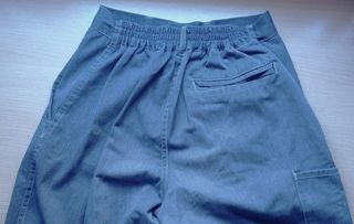 Pantalón tipo cargo en tono azul y gris. Confeccionado en una mezcla de materiales para mayor comodidad. Muy cómodos y de un color muy bonito - Cierre de cremallera y botón. - Cintura elástica. - Bolsillos laterales.