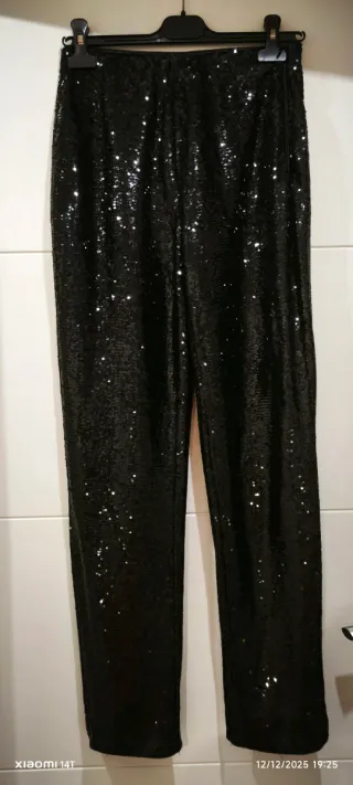 Pantalón largo con lentejuelas brillantes. - Diseño de lentejuelas completo. - Corte recto.. - Sirve para una 34-36 Nuevo con etiquetas