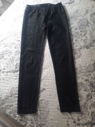 Leggings negros con un acabado brillante que les da un toque especial. - Diseño ajustado. - Cintura elástica.