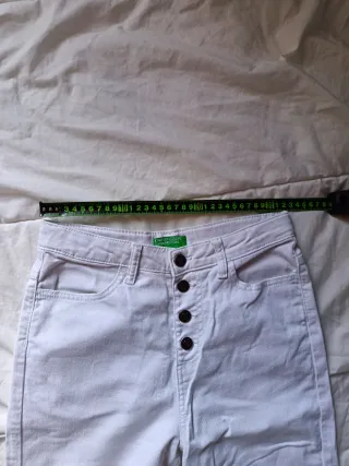 Pantalones de campana de la marca Benetton en color blanco. La talla es para 10/12 años aprox. - Tejido de algodón. - Campana - Cierre de cremallera botón.