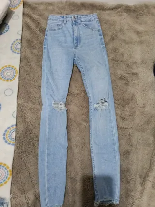 Pantalón vaquero blanco de Stradivarius talla 32 rotos en la rodilla. Puestos solo 2 veces.