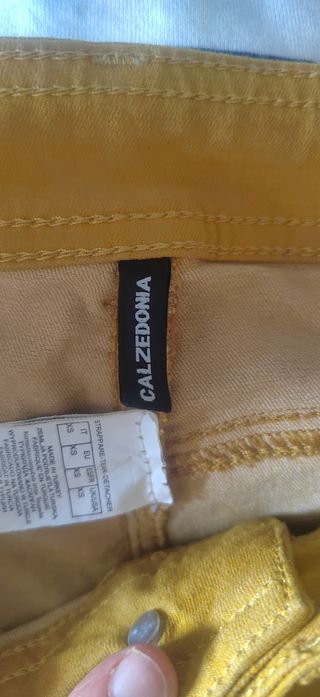 Está sin estrenar porque al probarmelo no era mi talla,es un poco amplio en la cadera.Goma en la cintura.No abriga,es ideal para llevar debajo de un vestido midi,jersey oversize...Efecto "cuero"