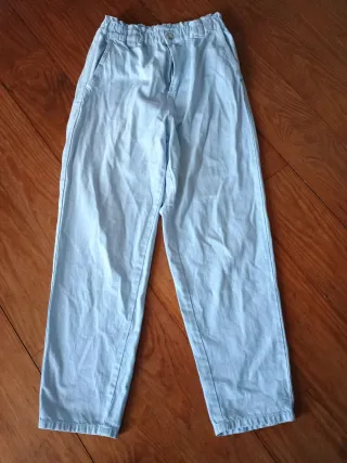 Pantalón de loneta en un tono azul claro. Ideal para un estilo casual. - Tejido de loneta. - Cintura con cierre de cremallera y botón. - Bolsillos delanteros y traseros.