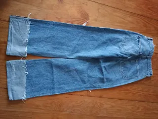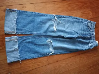 Pantalón vaquero de Zara con un diseño moderno y desgastado. - Corte recto. - Cintura alta. - Detalle de rotos en rodillas. - Bajo deshilachado.