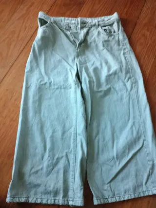 Pantalón Bershka de corte ancho y color verde. - Dos bolsillos traseros. - Cintura alta. - Piernas amplias.