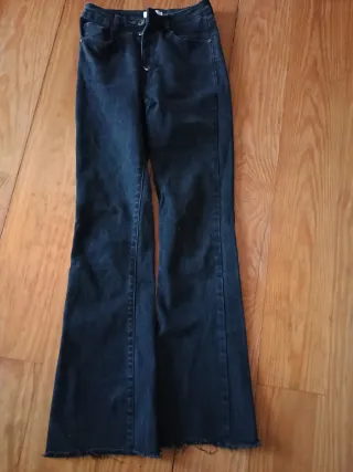 Pantalón de corte campana de la marca Missbon. - Color negro. - Diseño de cinco bolsillos. - Cierre de cremallera y botones. - Bajo deshilachado.