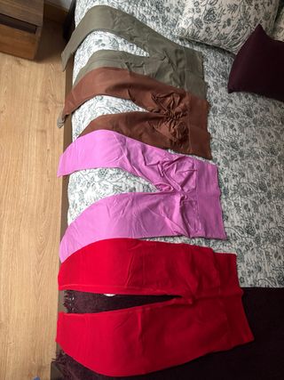 Conjunto de cuatro pantalones Stradivarius para mujer. - Talla 36. - Colores disponibles: beige, negro, marrón y verde. - Precio unidad: 8€ -Todo el lote : 26€