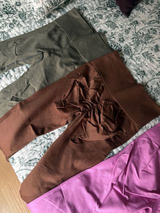 Conjunto de leggings en diferentes tonalidades, perfectos para combinar. Estan nuevos sin uso Talla Xs todos - Diseño liso y versátil. - Tejido cómodo y flexible. Fruncido en la parte de atras