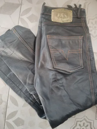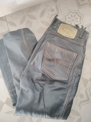 Pantalones de piel auténtica. - Material: Piel. - Costuras en contraste.