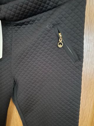 Leggings negros con un diseño acolchado. - Cintura elástica. - Bolsillos delanteros con cremallera y detalle de colgante. - Tejido texturizado.