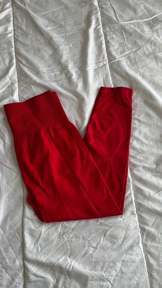 Leggings de la marca Shein, color rojo, talla S. Están sin usar. - Tejido brillante y elástico. - Diseño ajustado.