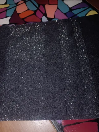 Leggings de la marca Channo en color negro, con un detalle de franja brillante. - Tejido elástico y cómodo. - Diseño con franja lateral de purpurina.