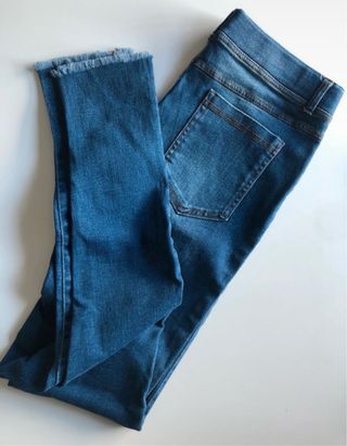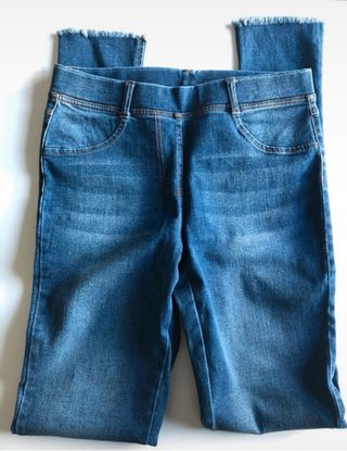 Leggings estilo vaquero, cintura elástica y bolsillos simulados. Medidas: 36 cm de cintura y 91 cm de largo.