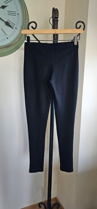 Pantalones azul marino de Bershka para niña, talla S (36/8). Son leggings ajustados, de corte recto y con cremalleras en los bajos. Están en buen estado. - Diseño elegante y sencillo. - Tejido suave y cómodo. - Cremalleras en los bajos.