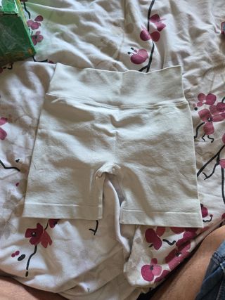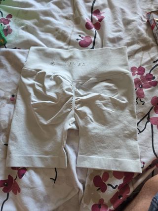 Pantalones cortos deportivos de la marca TEYEO, color blanco y talla S/36/8. Son de tiro alto y tienen un diseño que se adapta a la figura. - Tejido suave y elástico. - Perfectos para hacer ejercicio o para el día a día.
