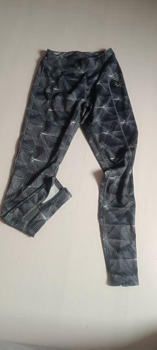 Leggings deportivos con un diseño geométrico en tonos grises y blancos. Perfectos para entrenar con estilo. - Diseño moderno y llamativo. - Tejido cómodo y flexible. Están nuevos,cremalleras en el tobillo y en la parte central de atras