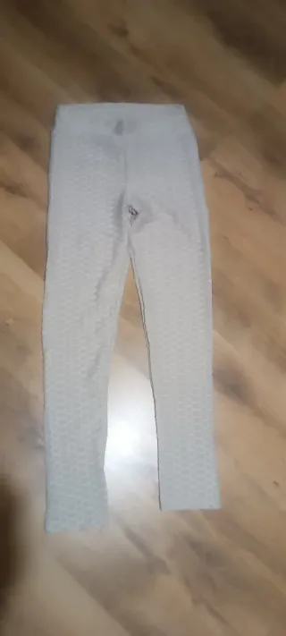 Leggings de color crema con un diseño texturizado. - Pone talla L/XL,pero tallan M - Tejido elástico y cómodo.