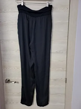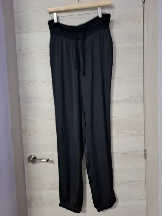 Pantalón largo de color negro. - Cintura elástica con cordón. - Puños ajustados en los tobillos. - Tejido ligero y fluido.