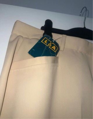 Pantalón de vestir para mujer. diametro cintura 98 cm alto 110cm de la cintura al tiro 38 cm - Talla XL (equivalente a 42/14). - Color beige. - Cierre de botón y cremallera. - Bolsillos laterales.