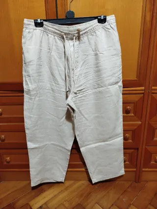 Pantalón de lino con cinturilla elástica y cordón. - Tejido ligero y transpirable. - Diseño con cordón ajustable en la cintura. - Bolsillos laterales.