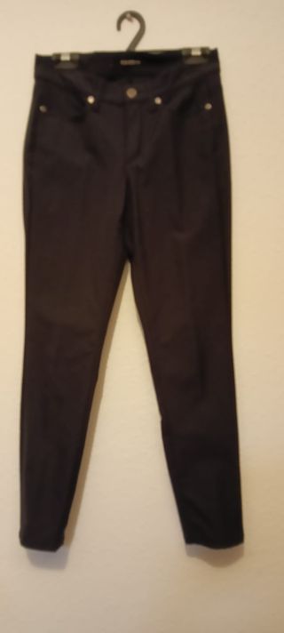 Leggins efecto piel, talla M (ver medidas). Color arena **en la imagen no se aprecia el tono real. Tenedlo en cuenta*. Cremallera en la parte interna del tobillo. Solo lo usé una vez porque se me quedó pequeño. Tiene un desteñido en la cara interna de la ingle que no se nota puesto (ver foto). Ideal con cualquier jersey tipo oversize como el de la imagen (Zara esta temporada). Tiene elastano. Medidas: 41 cm cintura. 25 cm de cintura a tiro. 47 cm a la altura de la cadera. 96 cm total largo medido desde la cadera. 14 cm ancho tobillo.