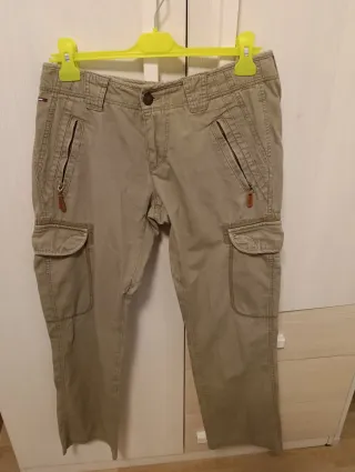 Pantalón tipo cargo de la marca Tommy Hilfiger en color caqui. Diseño moderno y funcional. - Cintura con trabillas. - Cierre de cremallera y botón. - Bolsillos delanteros con cremallera. - Bolsillos laterales tipo cargo con solapa.
