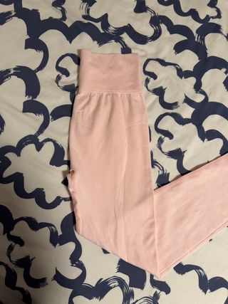 Leggings deportivos de corte seamless en color rosa. Perfectos para entrenar con comodidad. - Tejido suave y elástico. - Cintura alta. - Diseño sin costuras.