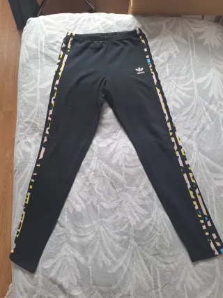 Leggings deportivos de Adidas con un diseño llamativo. - Rayas laterales con estampado multicolor. - Logo de Adidas en la cadera.