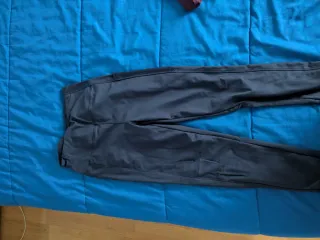 Pantalones en buen estado. - Un pantalón azul de tela ligera. - Un pantalón marrón de cuero sintético.