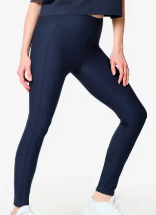 Leggings de entrenamiento para mujer en color azul marino. Cuentan con un práctico bolsillo. - Bolsillo para teléfono móvil. - Diseño ajustado. Además, cuentan con una cintura elástica de tiro alto que aporta un efecto vientre plano sin renuncuar al confort. ¡No te quedes sin ellos! Están como nuevos. Talla S. De Decathlon. Domyos.