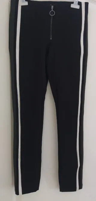 Como nuevo. Talla S. Rayas laterales blanca y verde oscuro, Cremallera frontal. Medidas: cintura 36 cm, tiro 21 cm, largo 65 cm