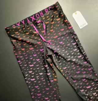 Leggings Roxy Activewear para mujer, originales, en estampado de gaviotas multicolor sobre fondo negro. Diseño técnico y deportivo con tejido muy elástico y confortable, ideal para running, fitness, yoga o uso diario. Incorpora rejilla transpirable en la parte trasera de la rodilla para mejor ventilación, bolsillo lumbar con cremallera y cordón interior de ajuste en la cintura. Calidad Roxy, acabado premium y costuras resistentes. En perfecto estado. Medidas aproximadas: 35 cm cintura x 88 cm largo. Talla M. Muy elásticos. #roxy #roxyactivewear #leggingsmujer #leggingsdeportivos #ropadeportiva #activewear #fitnesswear #yogawear