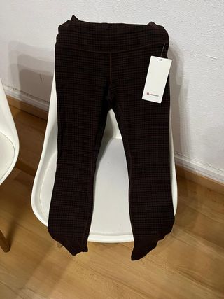 Leggings Lululemon con un diseño de cuadros en tonos marrón y negro. Perfectos para tu rutina de entrenamiento o para un look casual. - Tejido cómodo y elástico. - Estampado de cuadros. - Sin estrenar.