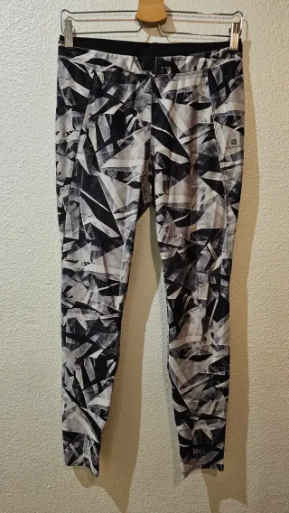 Mallas deportivas con un diseño geométrico moderno. - Cintura elástica para un ajuste cómodo. - Tejido transpirable. - Estampado abstracto en blanco y negro.