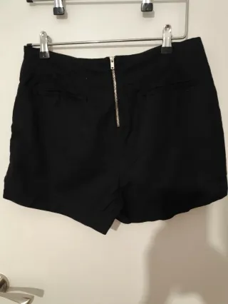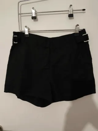 Pantalón corto de color negro con un diseño moderno, con bolsillos y cierre trasero de cremallera. - Detalle de hebillas en los laterales. - Cintura alta.