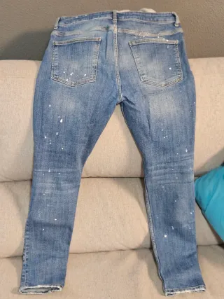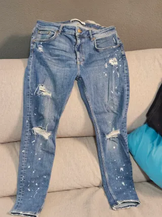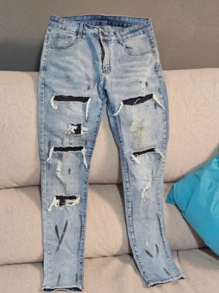 Pantalones vaqueros de corte ajustado con un diseño moderno y desgarrado. - Lavado azul claro. - Detalles de rotos y salpicaduras. - Estilo desgastado. 3 MAS EN MI PERFIL LOS 4 VAQUEROS..... 35€