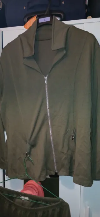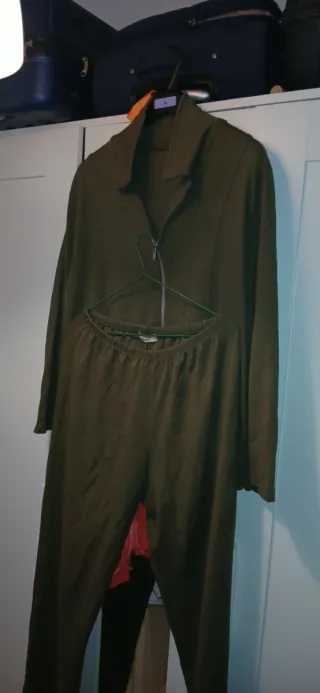 Conjunto de dos piezas en color verde. - Chaqueta con cremallera frontal. - Pantalón con cintura elástica.