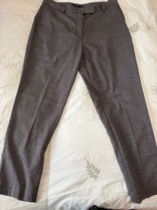 Pantalón de H&M en talla 42. Un básico para tu armario, con un diseño clásico de cinco bolsillos. - Corte recto. - Cierre de cremallera y botón. - Tejido resistente y cómodo. Es un modelo súper cómodo gracias a que su tejido es elástico, adaptándose perfectamente al cuerpo sin apretar. Uso: Muy poco uso, la tela conserva su color y firmeza original. Detalle: Tiene unas manchas muy pequeñas en la pierna derecha. Son casi imperceptibles a simple vista (ver última foto), pero prefiero avisar para total transparencia. Por lo demás, está impecable. De ahí el precio