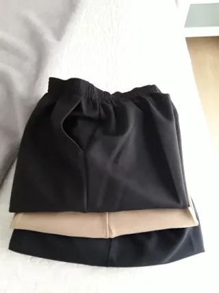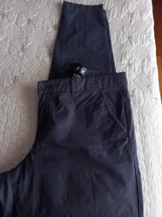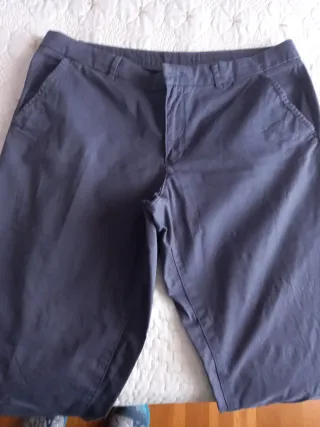 Lote de 3 pantalones XL, azul marino, negro, en el beig le puse botones pero no los llevaba. Son clásicos muy cómodos y elástico en la cintura, bolsillos., laterales. Moda y accesorios. Los 3 pantalones a 15€ recoger en Zaragoza. Si quieres te los envío