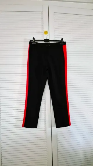 Pantalón de la marca Stradivarius con un diseño moderno. - Raya lateral de color rojo. - Corte recto. - Se puede probar sin compromiso Está nuevo, no se ha usado.