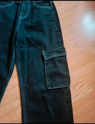 Pantalón cargo de la marca Blue Banana en color verde. Diseño moderno y funcional. - Cintura con trabillas. - Bolsillos cargo laterales. - Cierre de cremallera y botón. - Bajo ajustable con cordón. Sólo se han llevado en una ocasión.