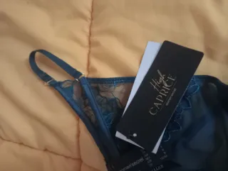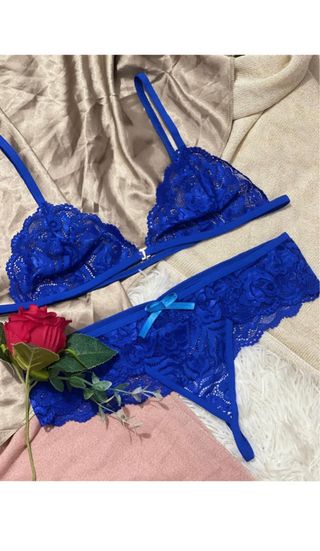 Conjunto lencería encaje azul talla XL
