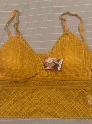 Preciosa lencería de encaje con un diseño delicado y femenino. - Tejido de encaje con patrón geométrico. - Banda elástica en la parte inferior. - Tirantes ajustables.