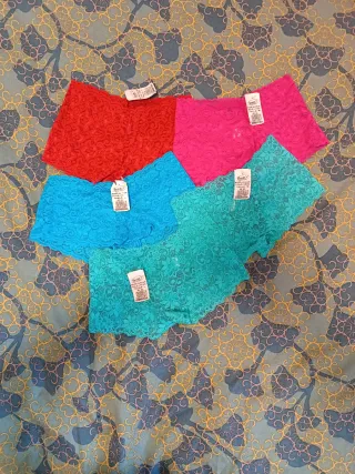 Cada uno 4 euros. los 5 por 16.60 euros boxers colombianos de encaje, ideales para un look cómodo y femenino. Varias tallas tres tallas L y dos tallas M - Diseño de encaje floral. - Cintura elástica para mejor ajuste. - Tacto suave y ligero.