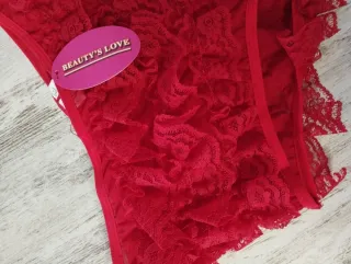 Preciosa tanga roja de encaje. Ideal para una noche especial. - Diseño de encaje floral. - Acabados delicados. - Material suave y cómodo.