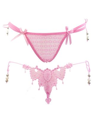 Tanga rosa sexy encaje perlas