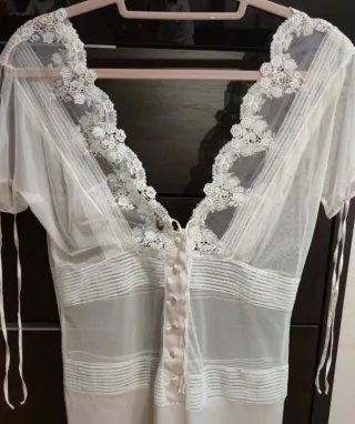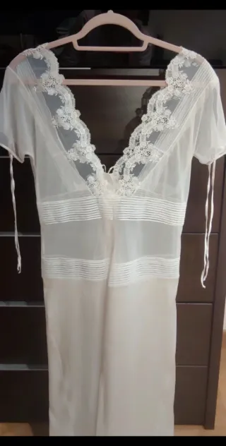 Elegante camisón de novia de la marca LA PERLA. Diseñado para un día especial. - Detalle de encaje floral. - Cierre con botones. - Tejido ligero y vaporoso. Producto en perfecto estado NUEVO, sin estrenar. Talla 2 Se realizan envíos envoltorio 🎁 bien cuidado.