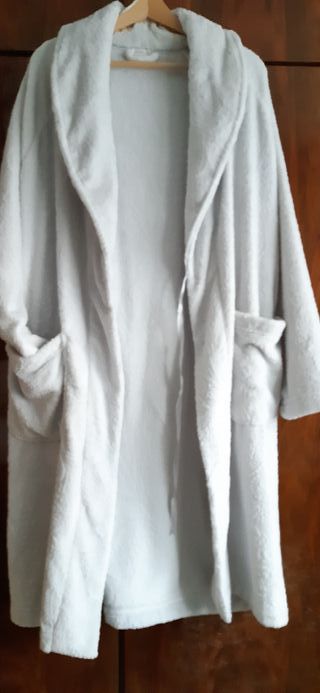 Bata polar de Oysho con un suave tejido adamascado. Color gris perla. Bata larga de tejido polar estampada adamascada mismo tono, color gris perla. Cuello solapa. Con dos bolsillos. Cierre mediante cinturón del mismo tejido. Largo 109 cm. Talla 42-44-46 (al ser cruzada sirve para varias tallas). Muy calentita, tacto muy suave. En perfecto estado, casi nueva (usada dos veces). Bien conservada y mantenida. Limpia e Higienizada. Marca OYSHO (Inditex).