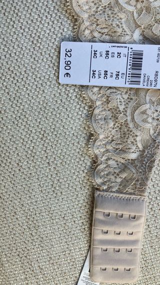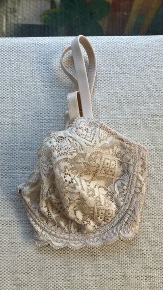 Sujetador con aro y detalles de encaje en color perla. - Diseño delicado con encaje. - Copa con aro para mayor soporte. Vendo error talla al comprar!